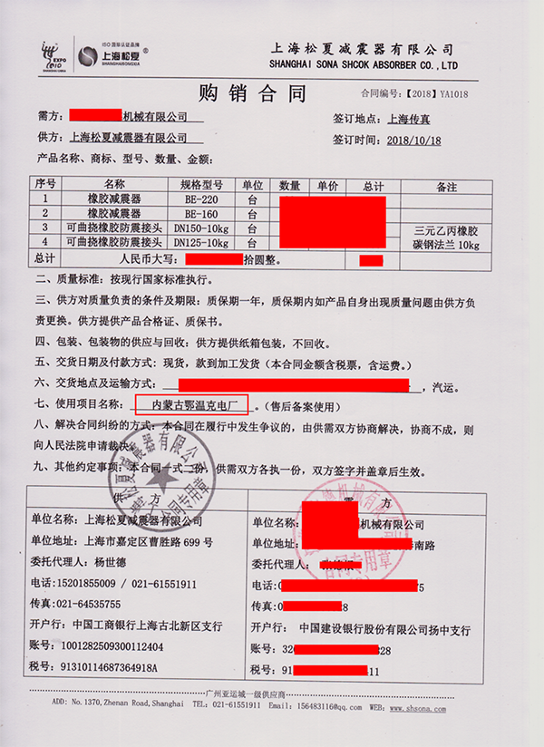 二、【內(nèi)蒙古鄂溫克電廠泵房減震項(xiàng)目配套橡膠接頭合同案例】銷售合同: