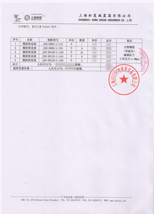 【響水電廠項目】采購松夏可曲撓橡膠軟接頭案